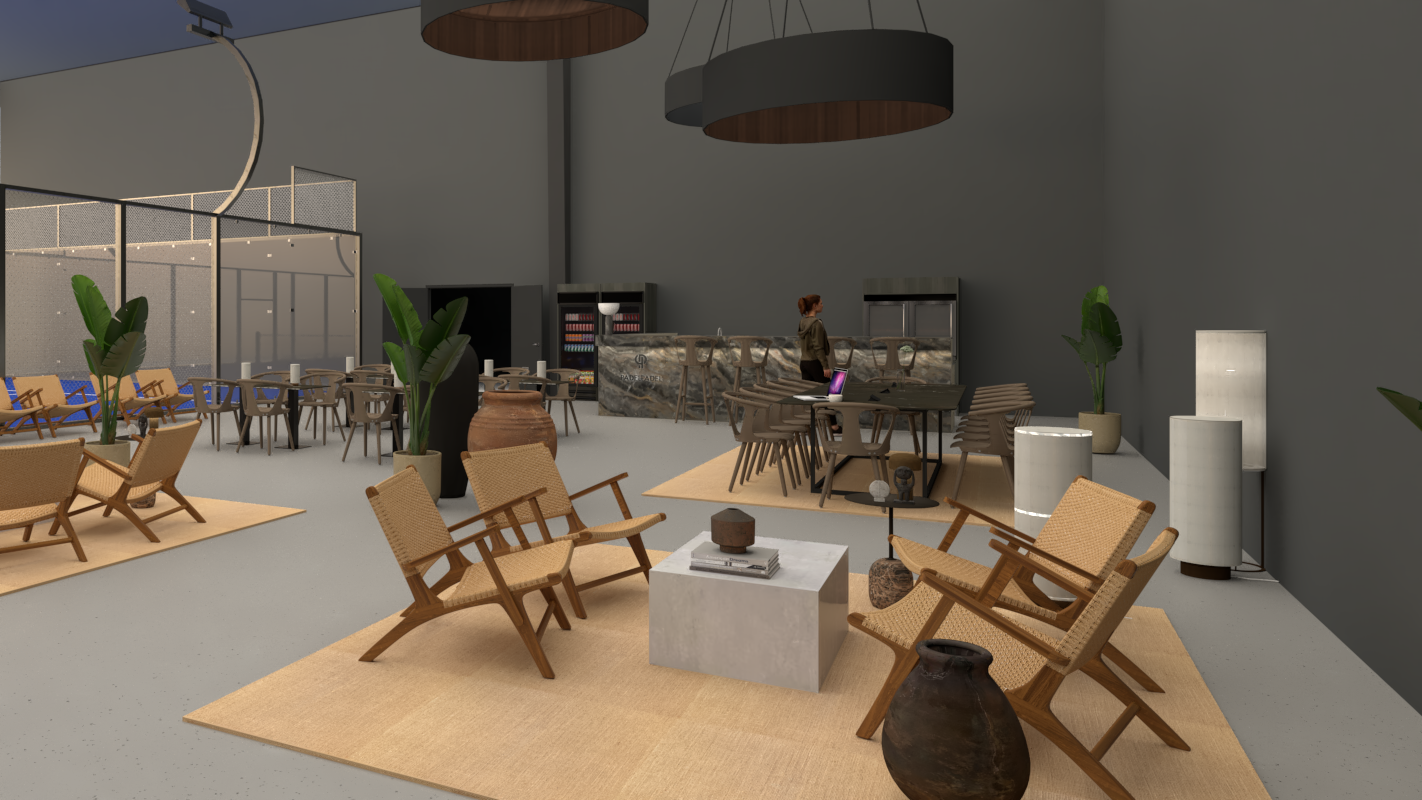 Når man indretter et loungeområde i et padelcenter, ved man én ting med sikkerhed: Det er ikke et 'stille-hjørne'. Her kommer mennesker og grupper ind med puls, sved, sportstasker, højt humør!